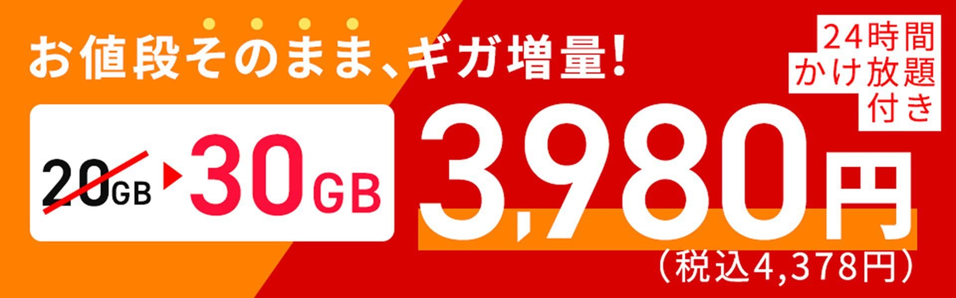 【新プラン登場】もっとお安く、もっと大容量に!「30GBプラン」が10月14日よりスタート!